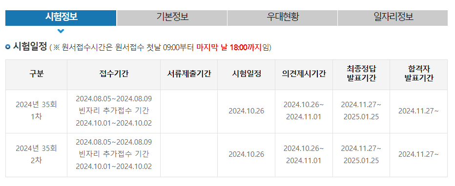 1) 시험 접수일: 2024년 08월 05일~2024년 08월 09일